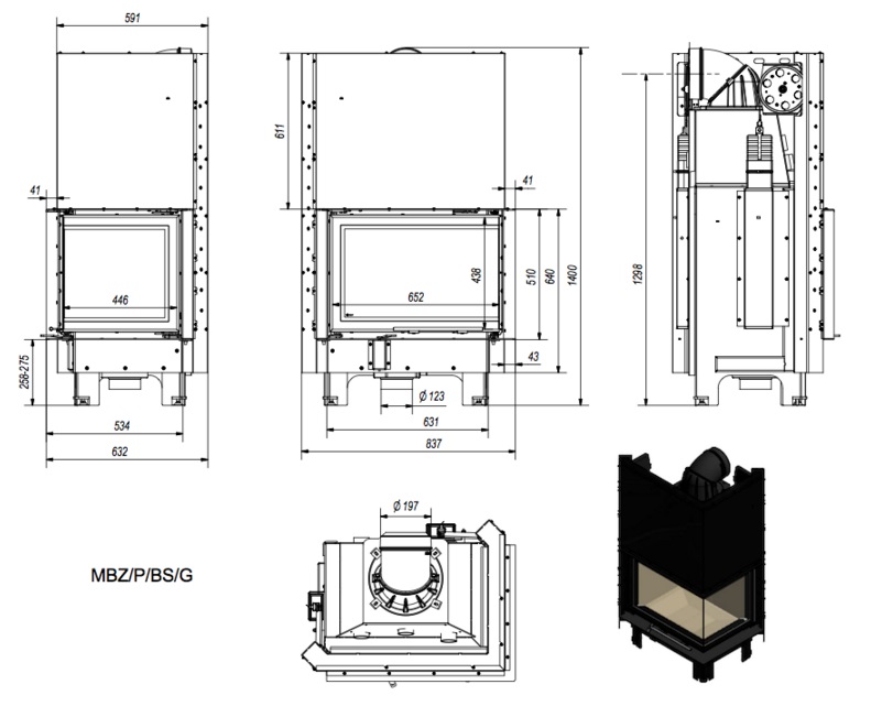 Úvod » Krbové vložky Teplovzdušné » Kratki MBZ 13 kW BS pravé presklenie s výsuvným otváraním dvierok a ohýbané sklo
