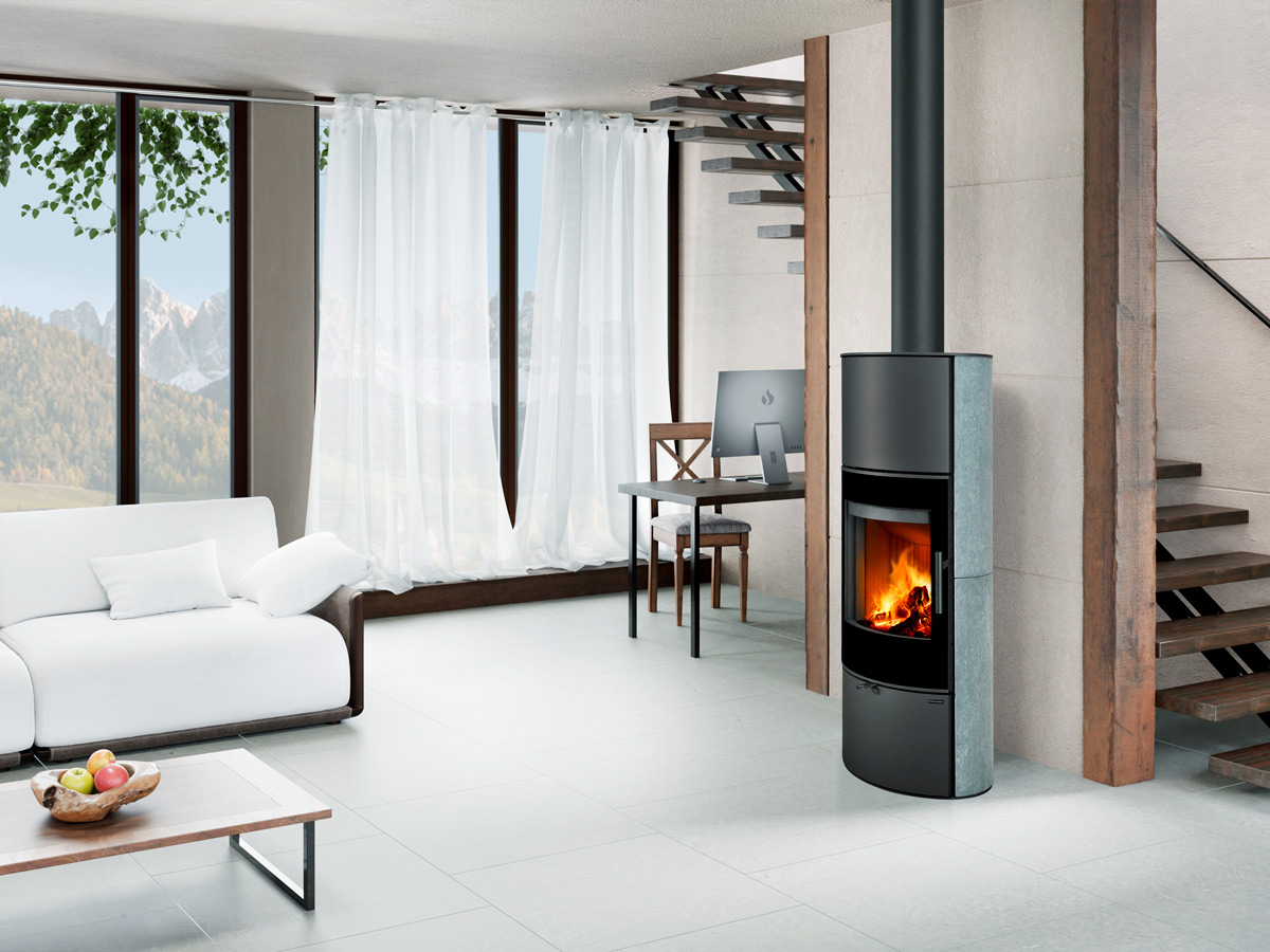 "Štíhle vysoké luxusné akumulačné kachle s obľúbeným oválnym tvarom a dlhodobou schopnosťou sálať dodatečné teplo."