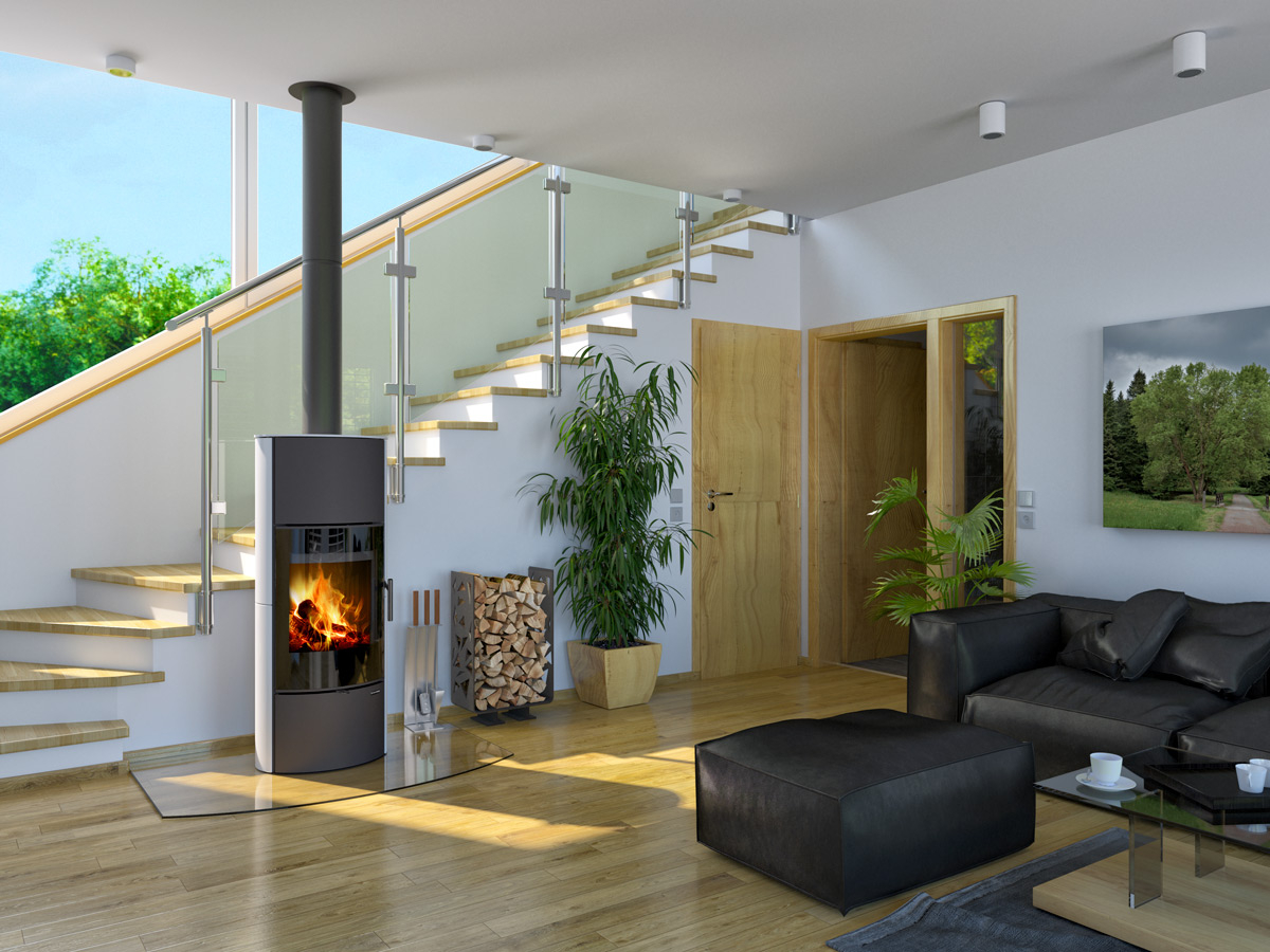 Štíhle vysoké luxusné akumulačné kachle s obľúbeným oválnym tvarom a dlhodobou schopnosťou sálať dodatečné teplo."
